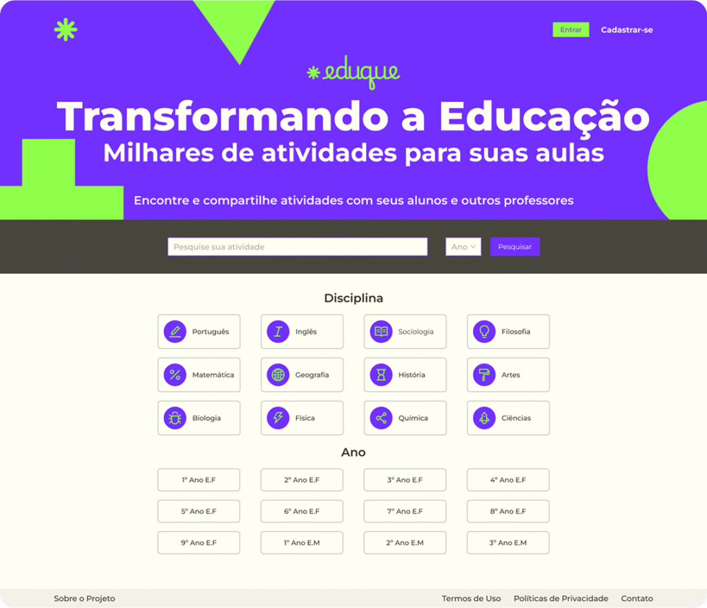 O Eduque nasceu com uma missão clara: facilitar a vida de professores e otimizar seu tempo. No entanto, o desafio era traduzir essa eficiência em uma experiência digital cativante e funcional. Era preciso criar um portal que falasse a linguagem dos educadores com familiaridade tecnológica, oferecendo uma vasta gama de exercícios de alta qualidade de forma prática e acessível. A plataforma atividades para professores precisava ser funcional desde a primeira interação.